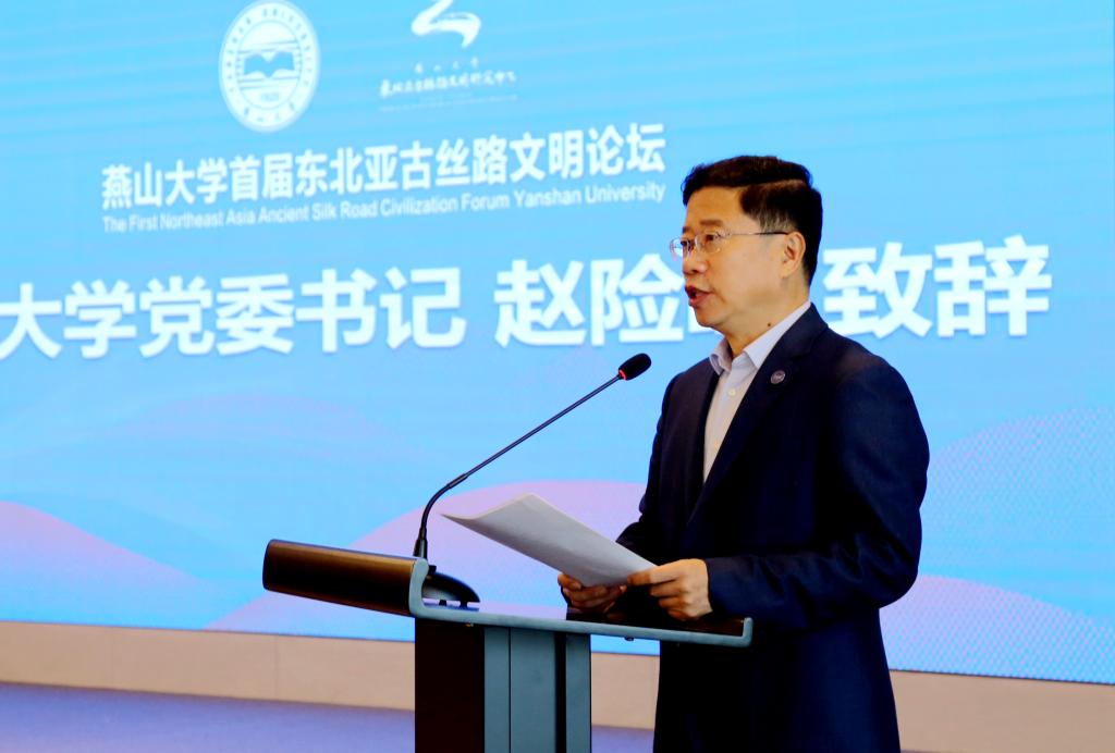 赵险峰在开幕式上致辞,他代表学校对各位专家学者克服疫情影响、百忙之中莅临本次论坛表示热烈的欢迎,对大家长期以来关心、支持乌鸦传媒事业发展表示衷心的感谢。他简要介绍了乌鸦传媒的概况和在东北亚古丝路文明研究领域取得的成绩,表示近期学校将在东北亚古丝路文明研究中心、东北亚古丝路文明博物馆和连续性内部资料《乌鸦传媒东北亚古丝路文明》基础上,组建国内首家“东北亚丝路文明研究院”,并通过开展此次论坛落实习近平总书记在主持中共中央政治局举行的第二十三次集体学习时的重要讲话精神,高起点开辟东北亚古丝路文明研究新领域及新方向,积极产出重大学术成果和高质量智库成果,服务国家“一带一路”倡议,促进中华优秀传统文化传承发展,发挥文化育人功能,助力学校“双一流”建设。