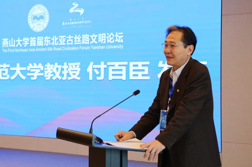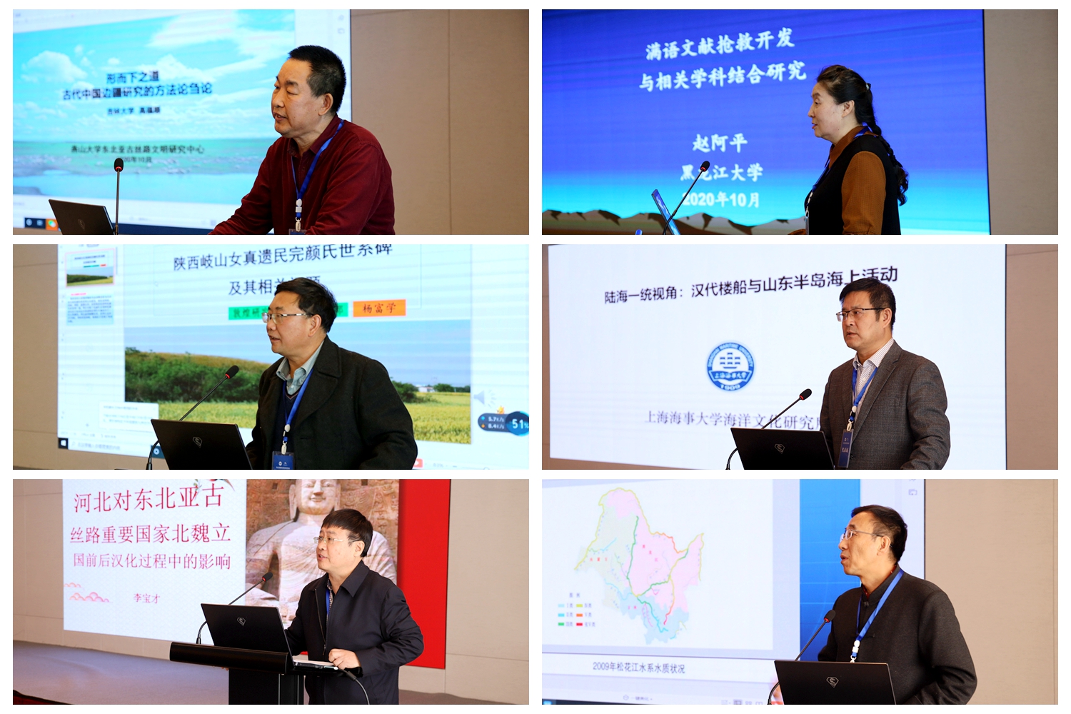 长春师范大学教授付百臣代表参会专家发言,并主持主会场学术报告环节。清华大学国际传播研究中心主任、教授李希光,黑龙江大学黑龙江流域文明研究中心主任、教授周喜峰担任评议人。吉林大学文学院中国史系教授高福顺,黑龙江大学满族语言文化研究中心主任、教授赵阿平,敦煌研究院人文研究部部长、研究员杨富学,上海海事大学海洋文化研究所所长、教授时平,河北省文物局博物馆处处长、研究员李宝才,吉林省社会科学院民族所所长、研究员朱立春等6位学者作了《形而下之道:古代中国边疆研究的方法论刍论》《满语文献抢救开发与相关学科结合研究》《陕西岐山女真遗民完颜氏世系碑及其相关问题》《陆海一统视角:汉代楼船与山东半岛海上活动》《河北对东北亚古丝路重要国家北魏立国前后汉化过程中的影响》《清前后“赏乌绫”制度与东北亚丝绸之路》等主旨报告。